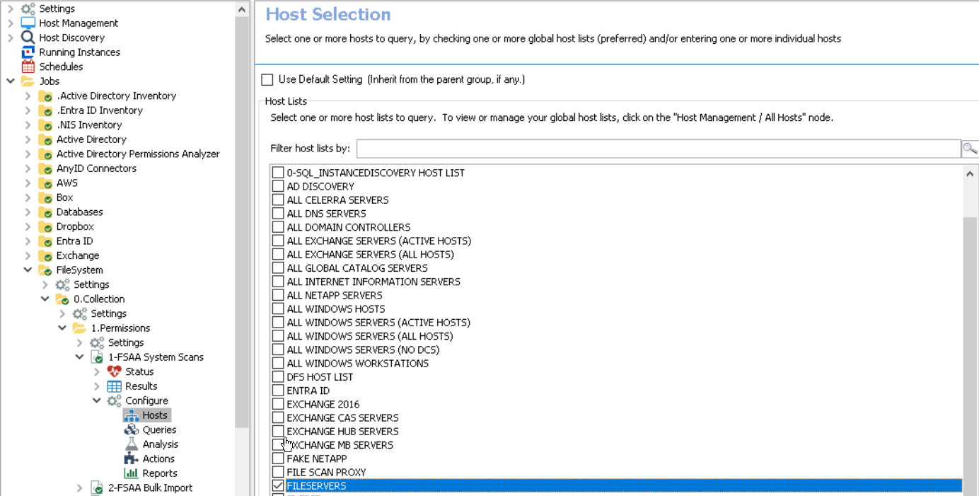 As it stands, in order to determine which FSAA proxy hosts are assigned to which file system scans, whether a permissions scan (FSAA System Scan), an activity scan (FSAC System Scan), or a sensitive data scan (SEEK System Scan) requires first checking the query configuration of the scan in question, reviewing the “Scan Server Selection” configuration, and making note of either the “Specific Remote Server” or “Specific Remote Server by Host List” setting.
