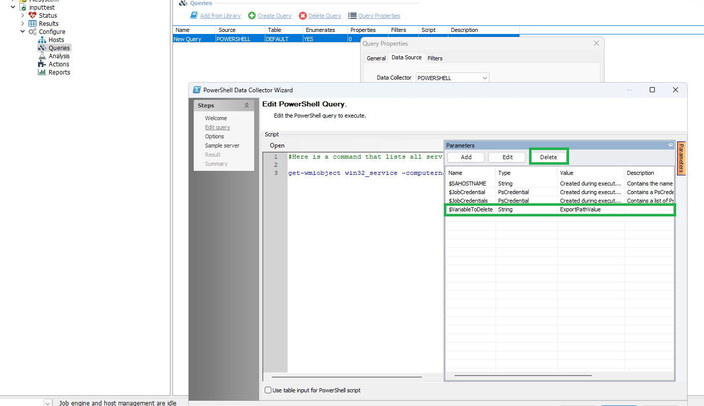 Workaround: To remove a variable, please use the PowerShell Data Collector wizard.
