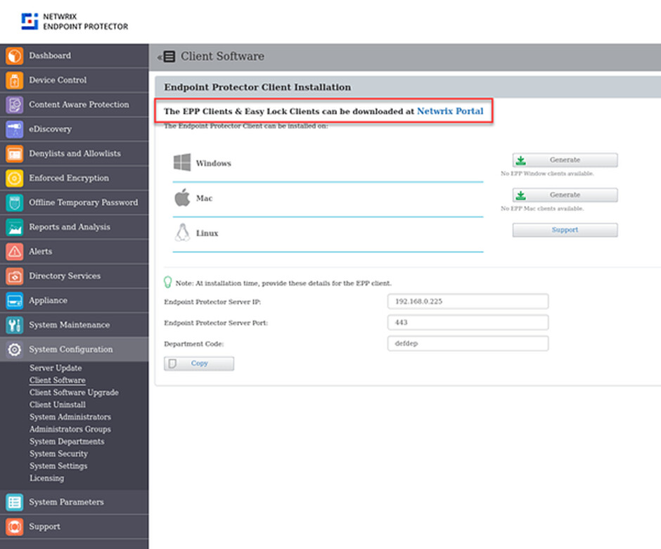 This release will not ship with Client Software built in to the server. It must be downloaded separately from Netwrix My Products. Then if desired, re-uploaded into the Endpoint Protector Server.