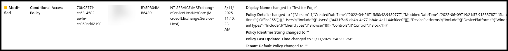 Since around 2/28, our daily Exchange Online Activity summary has been loaded with supposedly modified conditional access policies when no such changes have been made. Every day the report will show every single conditional access policy on the tenant but with nothing changed.
