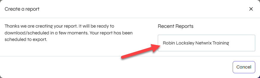 Once the report has finished processing, you will need to click the Recent Report link to download it.