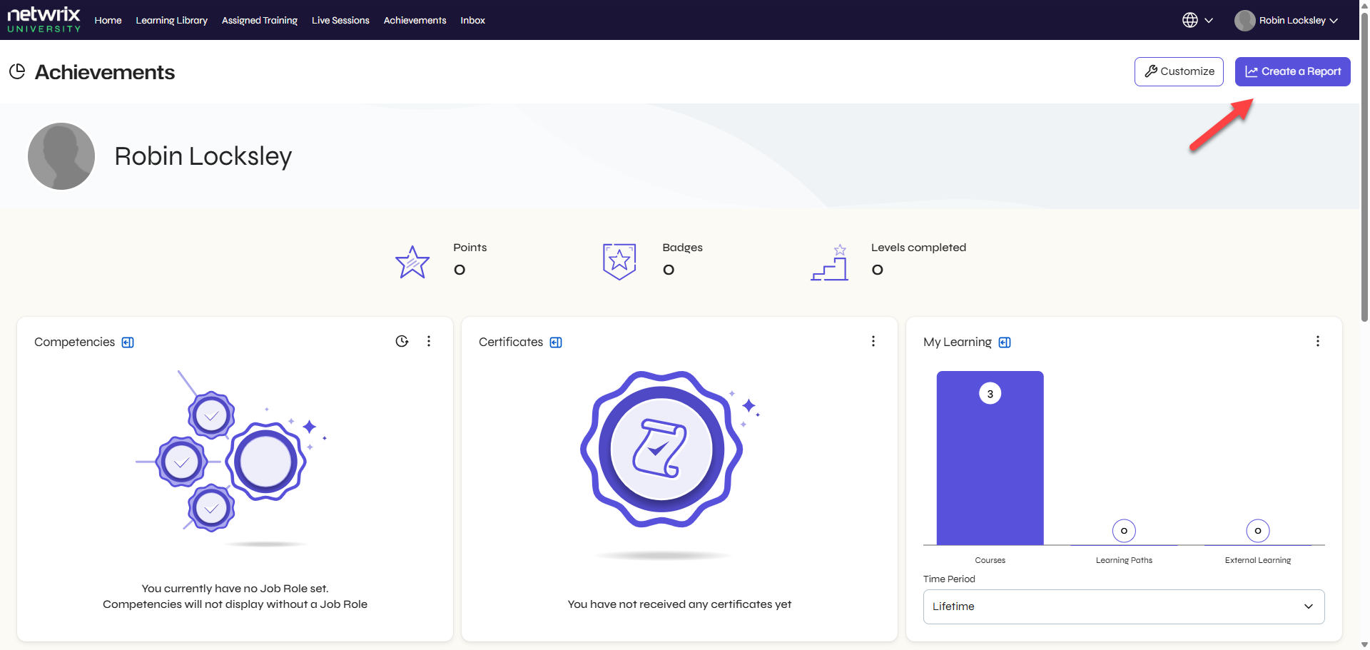 When the Achievements page opens, use the Create a Report button in the top-right corner to generate a report.