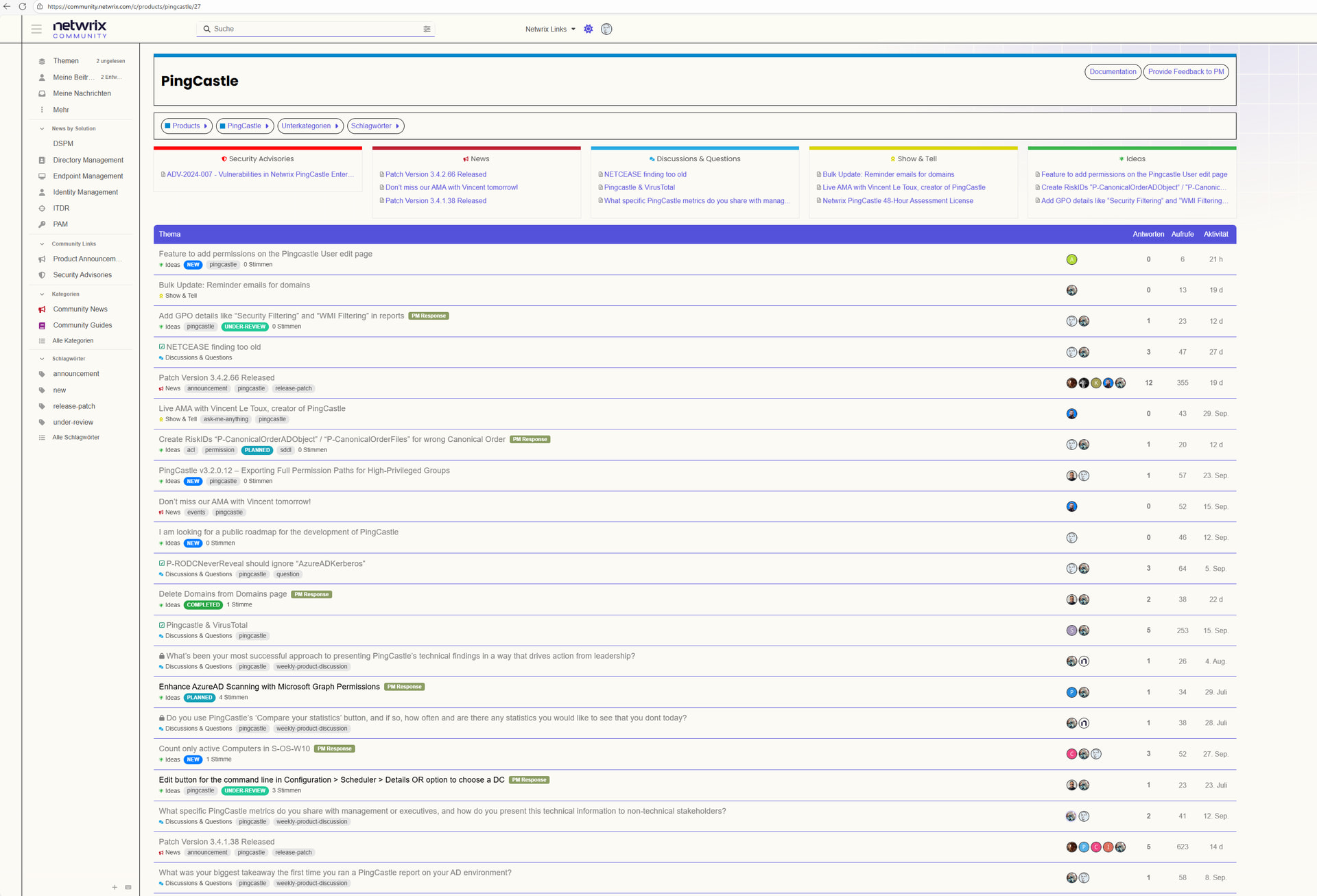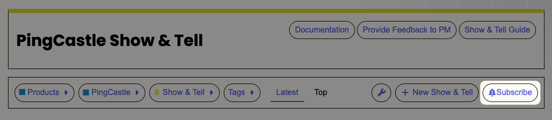 FYI you’ll want to subscribe to one of the subcategories within PingCastle. The product-level category is just a container and doesn’t actually receive new topics.