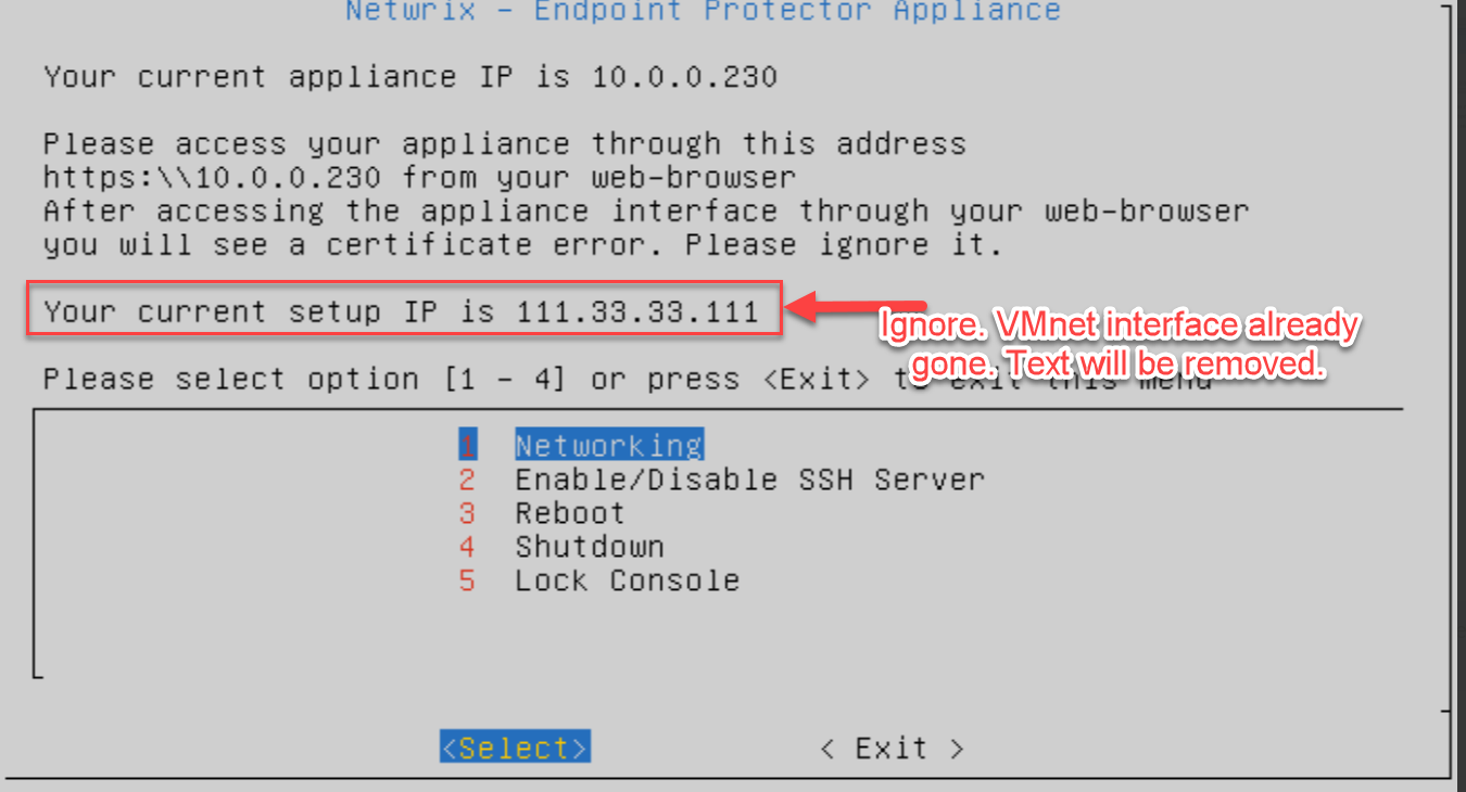NOTE: A bug is reported such that the mention of an old (and now UNUSED) VM network card (now deprecated) is still mentioned as 111.33.33.111 in the VM console. This can be safely ignored as the second VM network was completely removed from the server. The text reference will be completely removed in an upcoming patch / release.