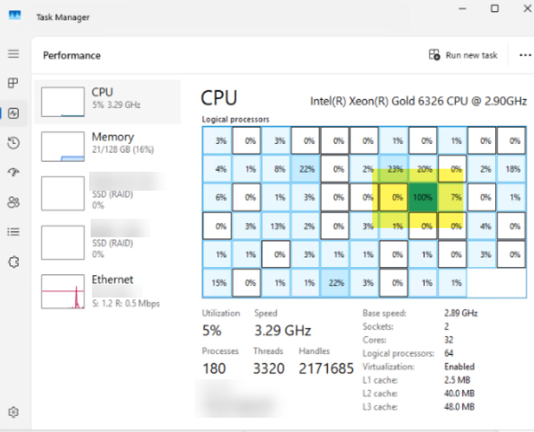 I recently updated our production EPE HIBP DB on our new servers and noticed that it still took a long time to update the DB. I checked our processors during this and noticed that when it’s uploading the HIBP hashes to the Enterprise Manager from a local password.txt file, it seems to peg only one of my logical processors, and I have 64.
