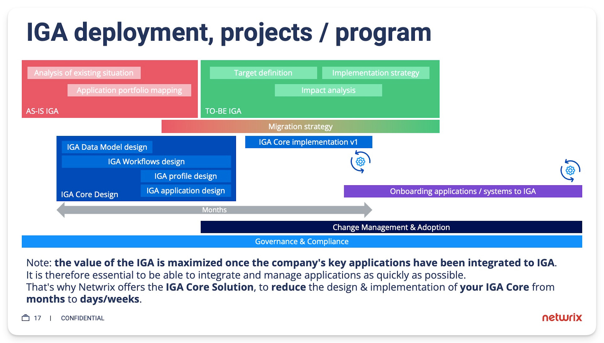 As explained in this document describing how to deploy an IGA, IGA deployment & governance with Netwrix Identity Manager, deploying an IGA is more of a program than a project. A program comprising different projects.