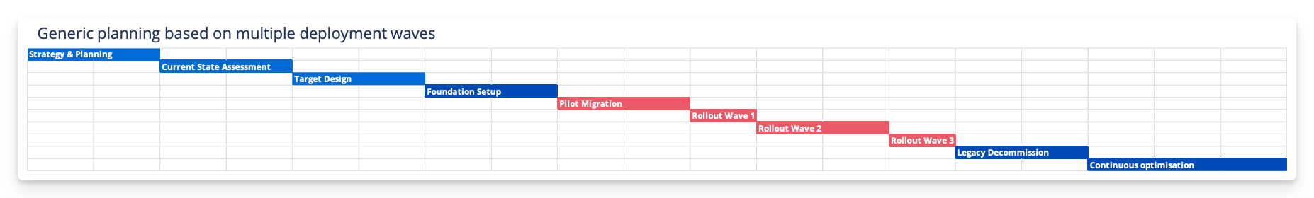 - Big bang vs phased migration: Most enterprises go phased (start with HR & AD, then critical apps, then long tail).